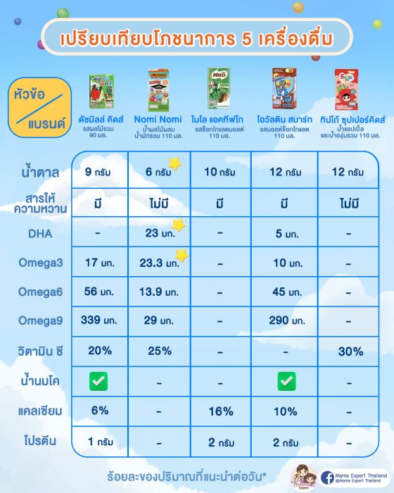 เทียบชัดๆ 5 เครื่องดื่ม UHT ยอดฮิตของลูกน้อย: น้ำผลไม้ Nomi Nomi กล้าให้ DHA ที่สูงกว่าจริงไหม?